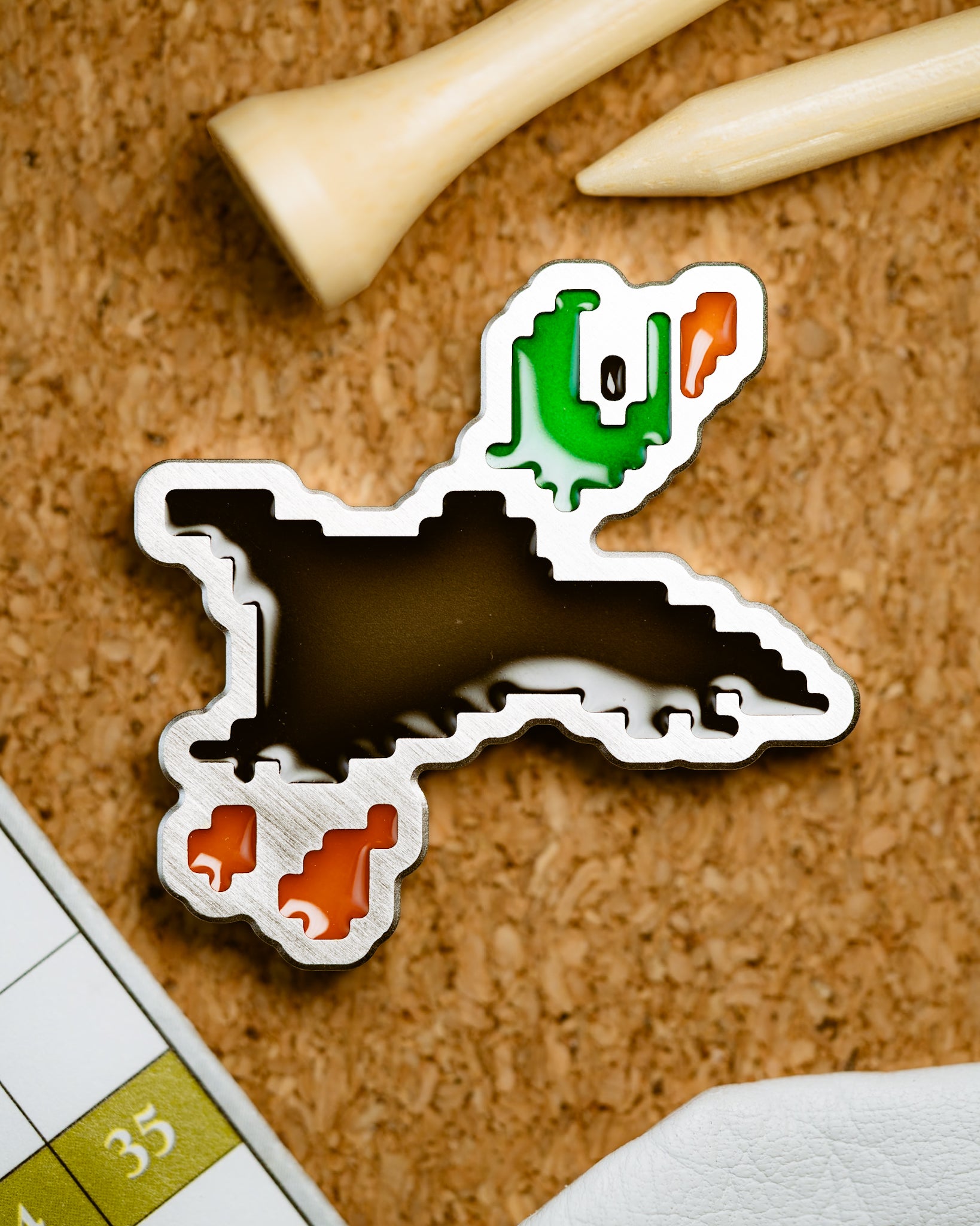 これらのボールマーカーは、ステンレススチールの塊から始まり、その大胆で生き生きとした形状をとらえるために精密にCNC加工されています。加工後、鋭いエッジを滑らかにし、すっきりとした明確な形状を確保するために、慎重にバリ取りが行われます。そこから、すべてのマーカーは手でブラッシングされます。各ストロークは、表面に温かみのあるサテンのような仕上げを与える柔らかく方向性のあるテクスチャを作成するために慎重に適用されます。ブラッシングが完了すると、最終的なディテールは手描きされ、キャラクターに命を吹き込む鮮やかな色で重ねられます。その結果、意図的に作られたボールマーカーが生まれ、グリーンに足を踏み入れるたびに、個性と静かな自信が加わります。